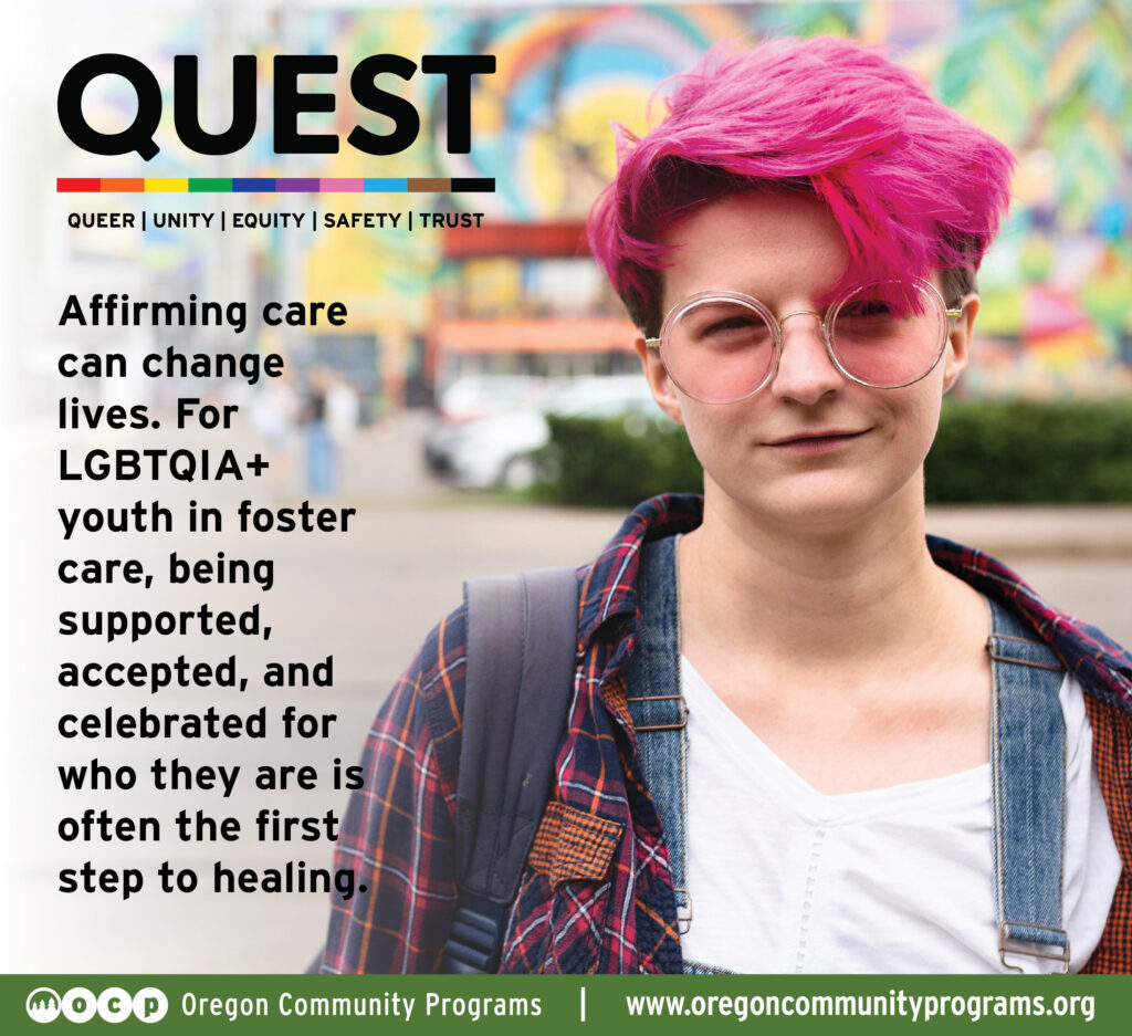 Oregon Community Programs (OCP) is proud to introduce QUEST, a groundbreaking program that provides affirming, trauma-informed care for LGBTQIA+ youth through the evidence-based Treatment Foster Care Oregon (TFCO) model.